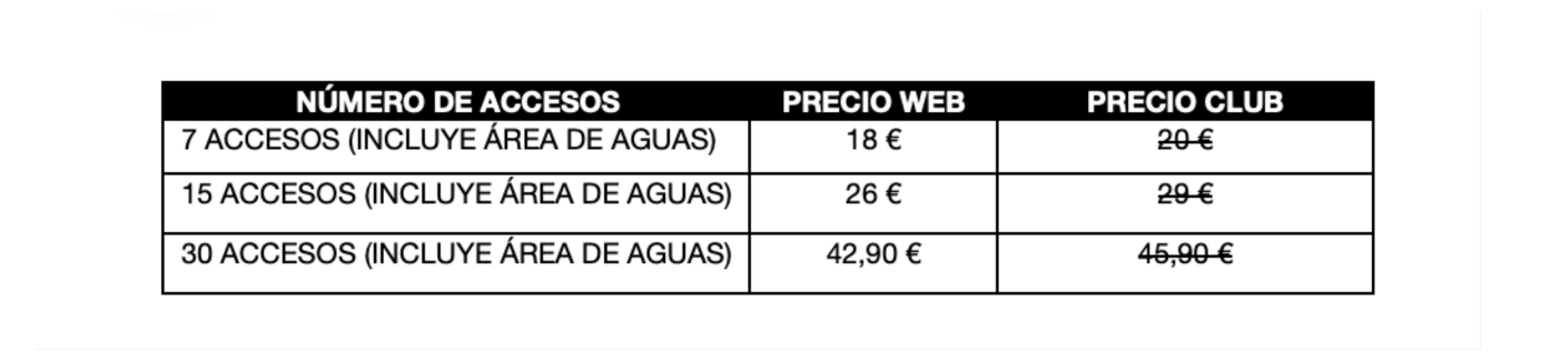 ◼ Sólo se puede disfrutar de un máximo de tres bonos de acceso o temporales por persona y por año.