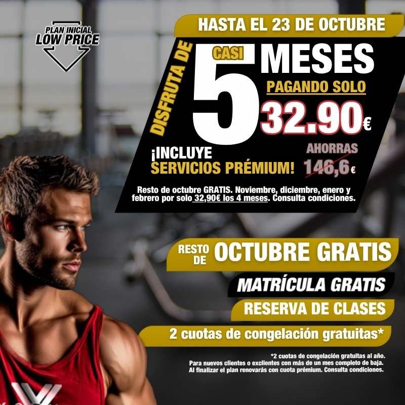 ◼ Este es un “PLAN LOW PRICE”. Los Planes y Cuotas de Inicio “LOW PRICE” sólo se pueden disfrutar una única vez en el año por usuario. Tenemos otras ofertas MUY interesantes en nuestro club, consúltalas.
