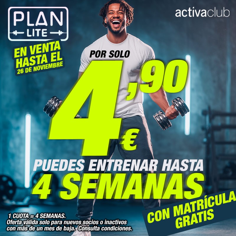 ◼ EL PLAN LITE te permite entrenar hasta 4 SEMANAS completas al MEJOR PRECIO DEL AÑO. Una oportunidad perfecta para empezar, volver o retomar tu rutina con toda la energía